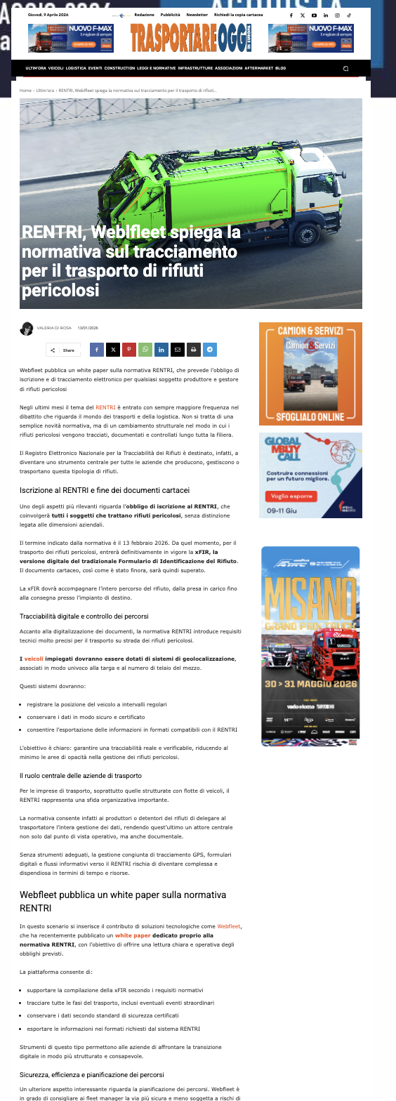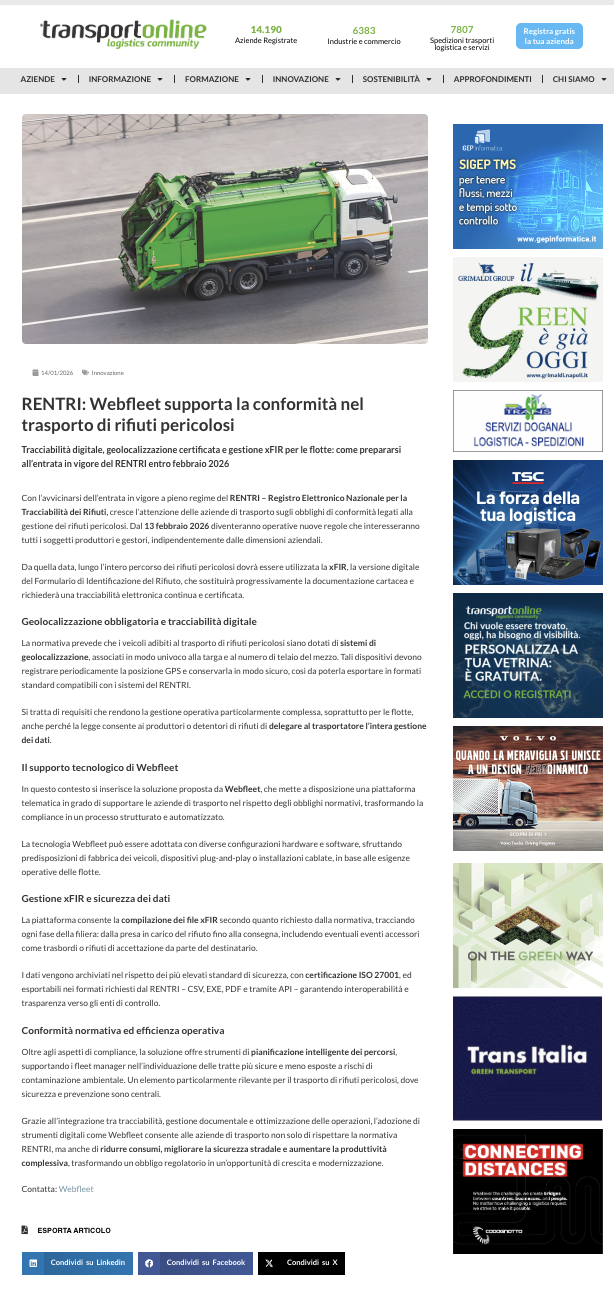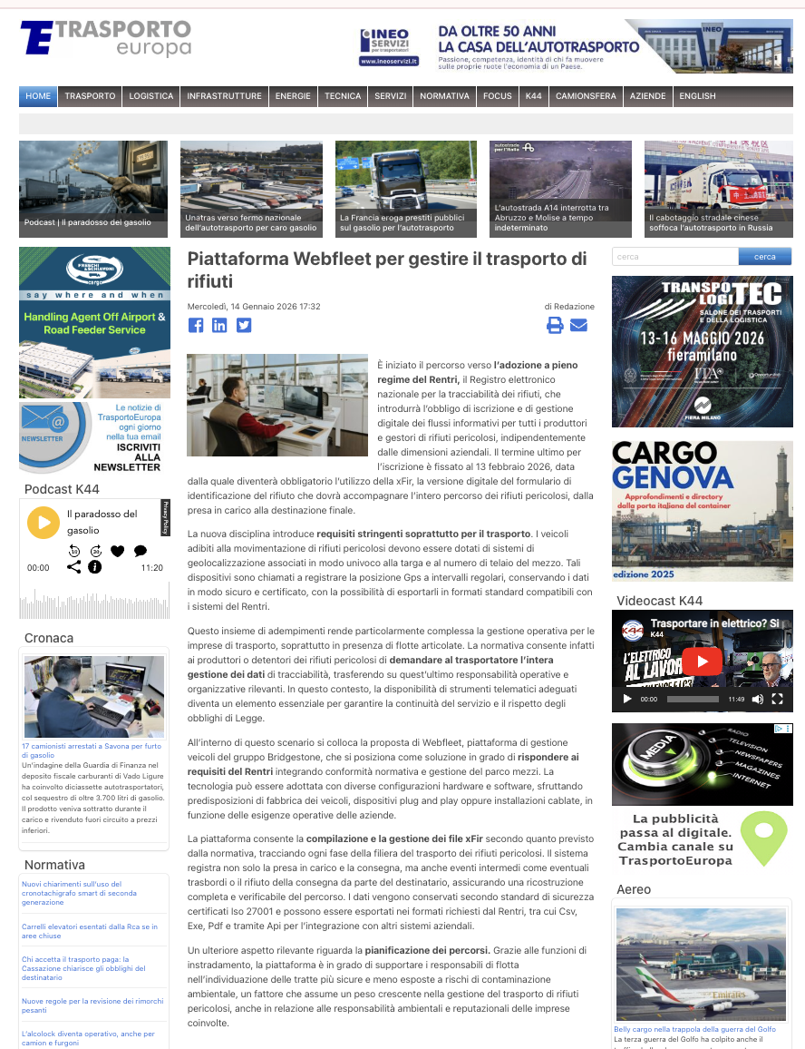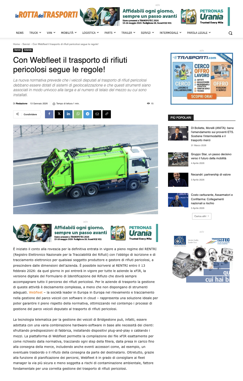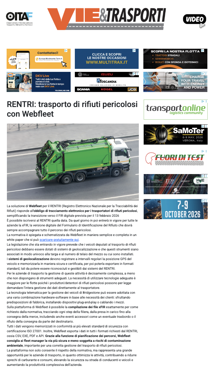 Con Webfleet il trasporto di rifiuti pericolosi segue le regole!