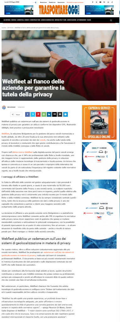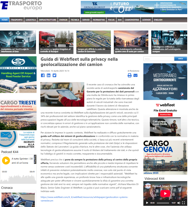 Guida di Webfleet sulla privacy nella geolocalizzazione dei camion