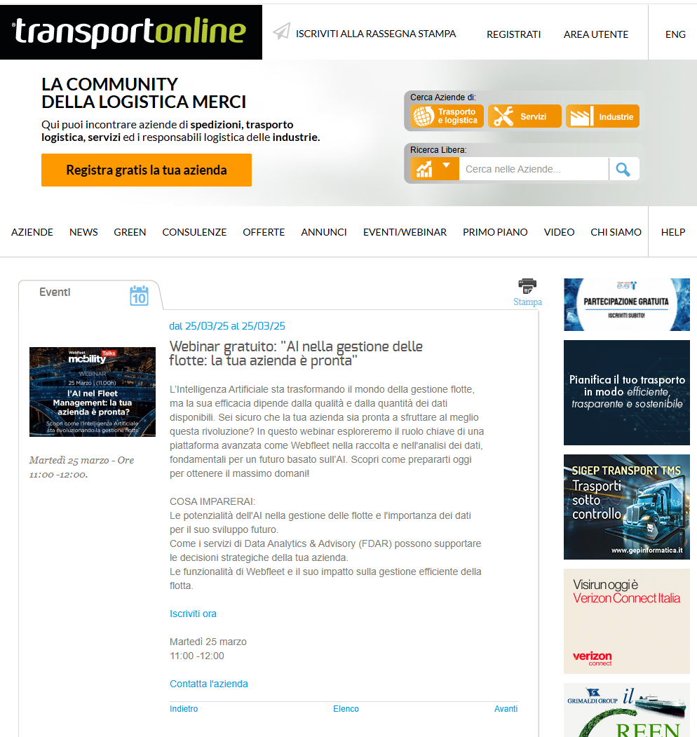 Webinar gratuito: ''AI nella gestione delle flotte: la tua azienda è pronta''