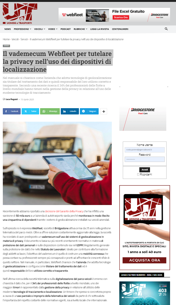 Il vademecum Webfleet per tutelare la privacy nell’uso dei dispositivi di localizzazione